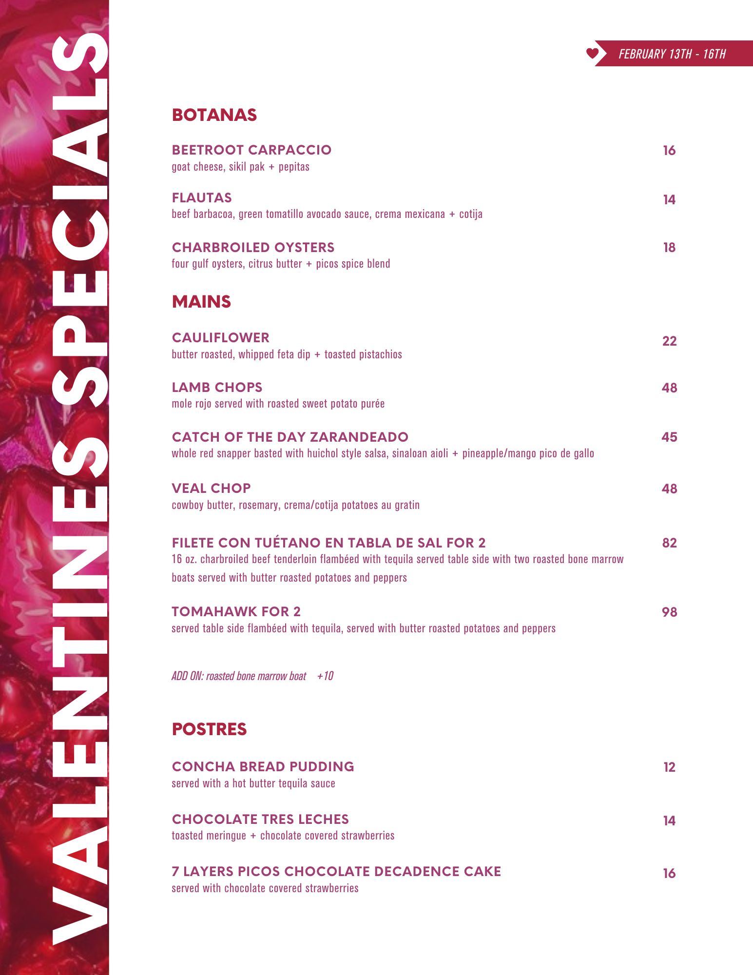 Join us at Picos for an unforgettable Valentine’s & Galentine’s Weekend filled with romance, friendship, and incredible flavors. Plus, enjoy a special mariachi serenade on Friday, February 14th, making your evening even more magical!